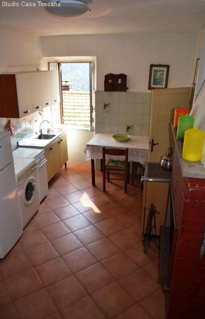 There are two spacious bedrooms, a renovated bathroom with shower, a living kitchen with open fireplace and an easily accessible attic.