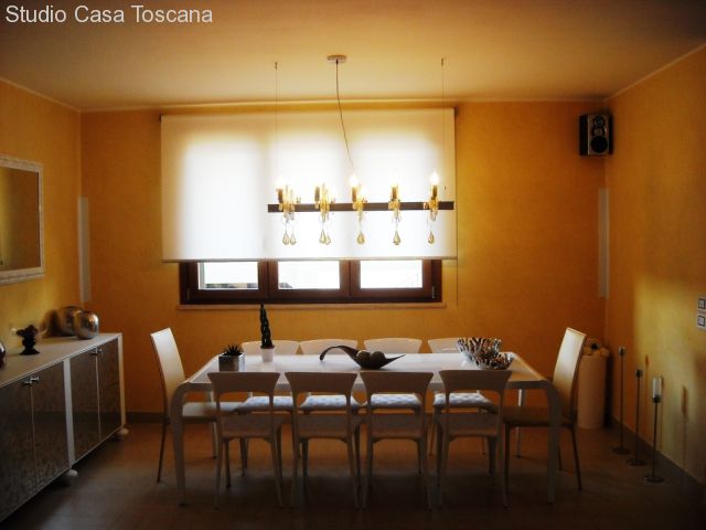 Im Erdgeschoss befindet sich der Haupteingang, eine große Küche mit Zugang ins Freie, ein Esszimmer und ein Wohnzimmer mit Zugang auf die Terrasse. Darüber hinaus gibt es ein Gästezimmer und ein Bad im Erdgeschoss.