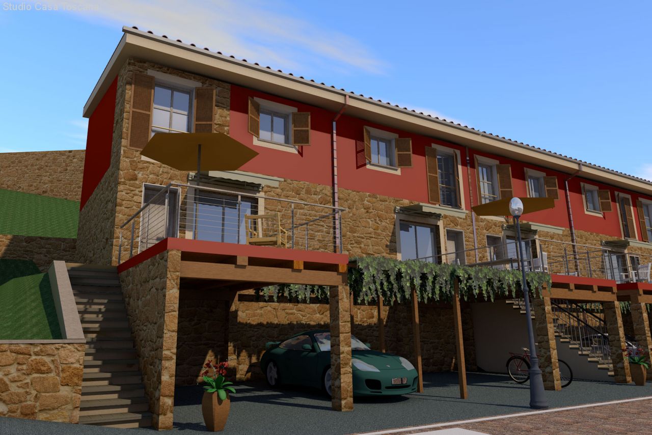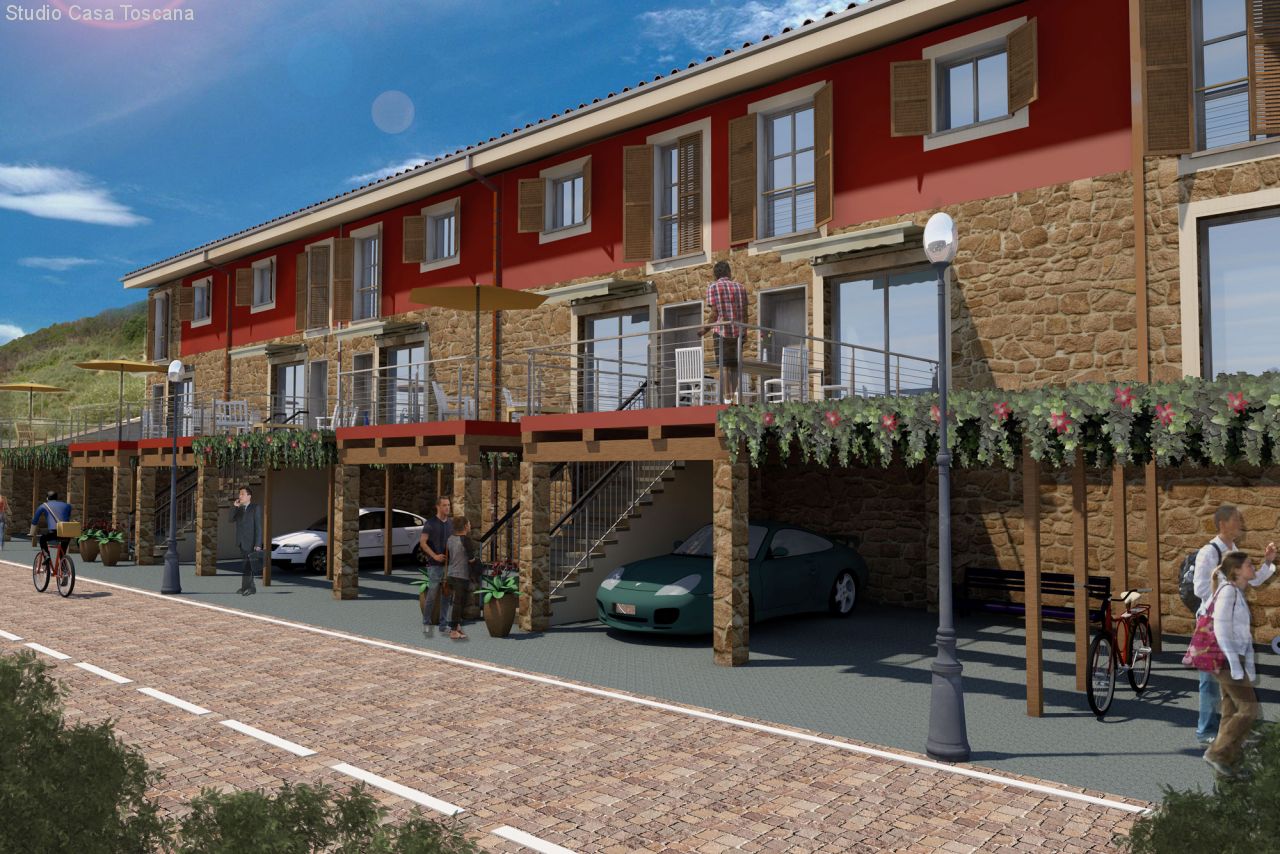 Das Haus erstreckt sich über zwei Stockwerke. Der toskanische Stil verbindet sich mit der Moderne und dem heutigen Komfort. Vom Haus hat man einen herrlichen Blick über die Landschaft der Maremma. Die Wohneinheit verfügt über einen privaten Garten und zwei Carports, einer davon überdacht.
