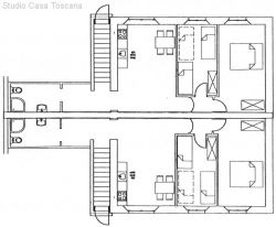 On the second floor there are 2 apartments, each about 65sqm and each with 2 bedrooms, a bathroom, kitchen and living room. The apartments are all equipped with air conditioning and heating system and are completely furnished. Around the manor there are 1000sqm garden. It’s possible to buy further land.