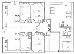 On the ground floor there are 3 apartments, each about 60sqm and each with 2 bedrooms, a bathroom, kitchen and living room and a covered terrace.