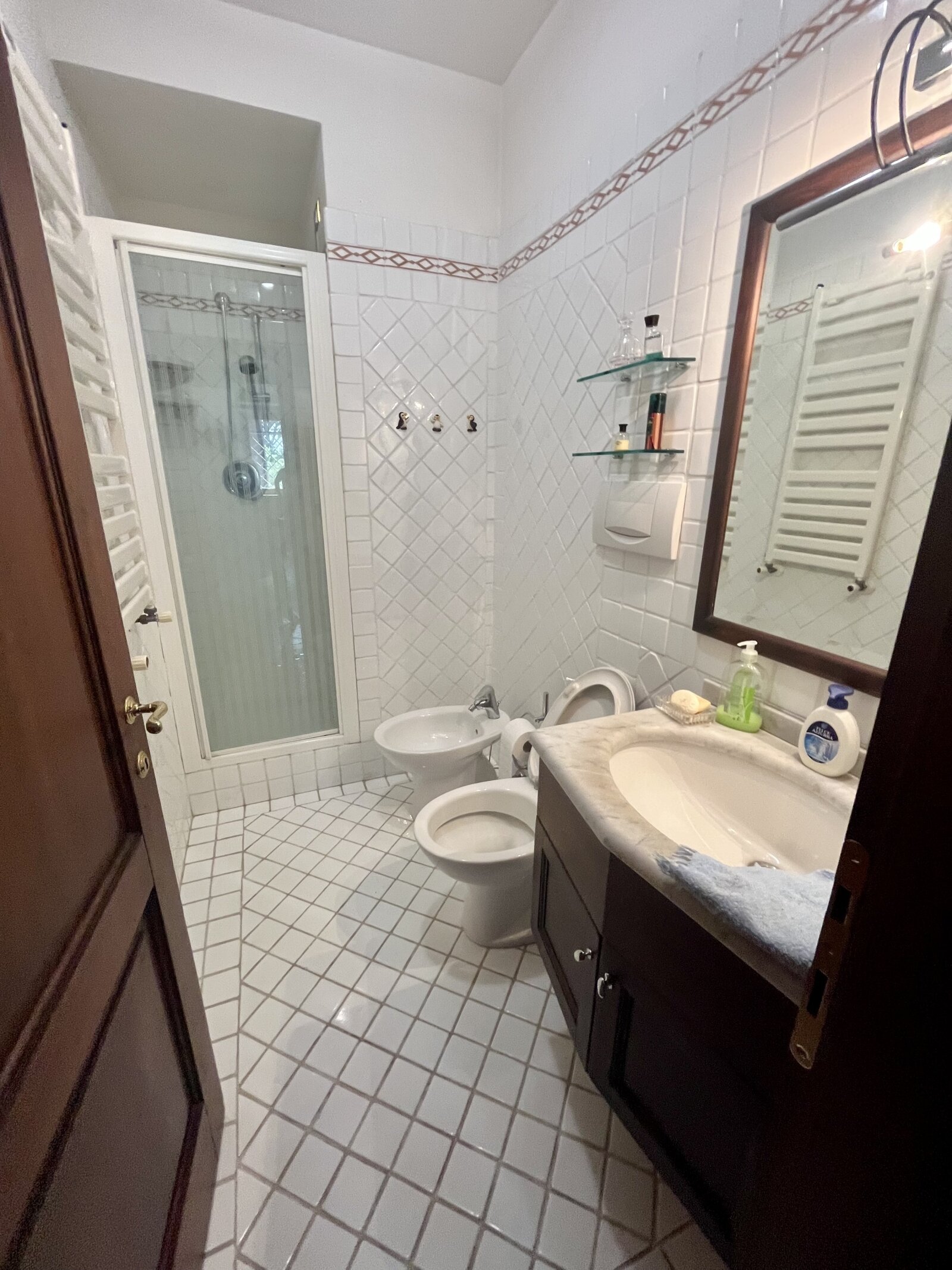 High-quality materials such as terracotta and parquet flooring, mosaic tiles in the bathrooms, and custom-built niches contribute to an elegant and welcoming atmosphere.