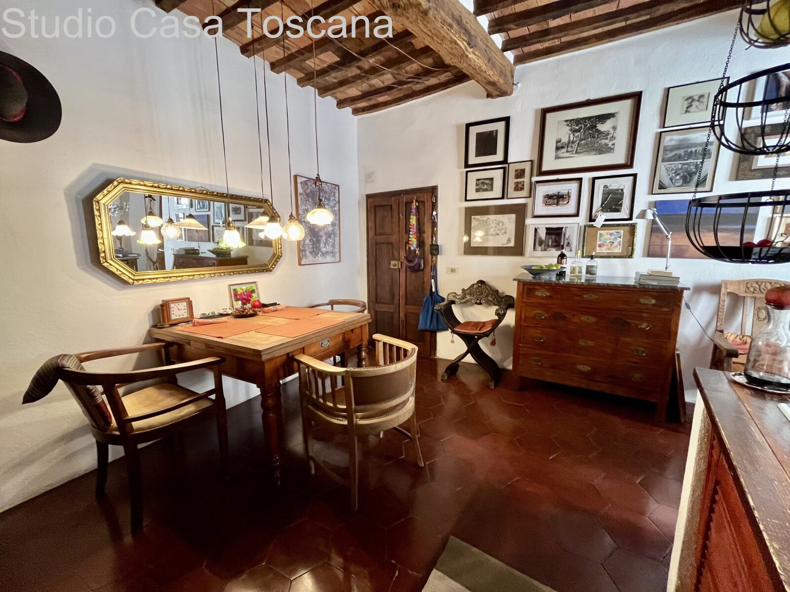 Original terracotta floors, exposed wooden beams and traditional masonry niches highlight the home’s quality and the care with which it has been preserved over the decades.