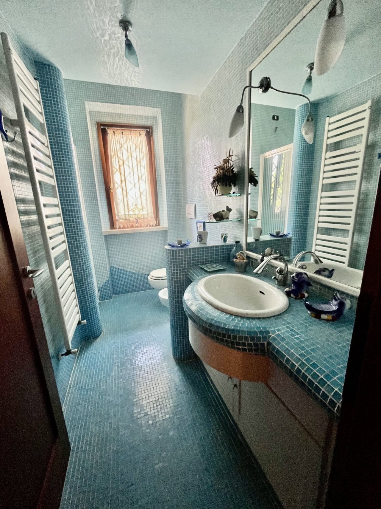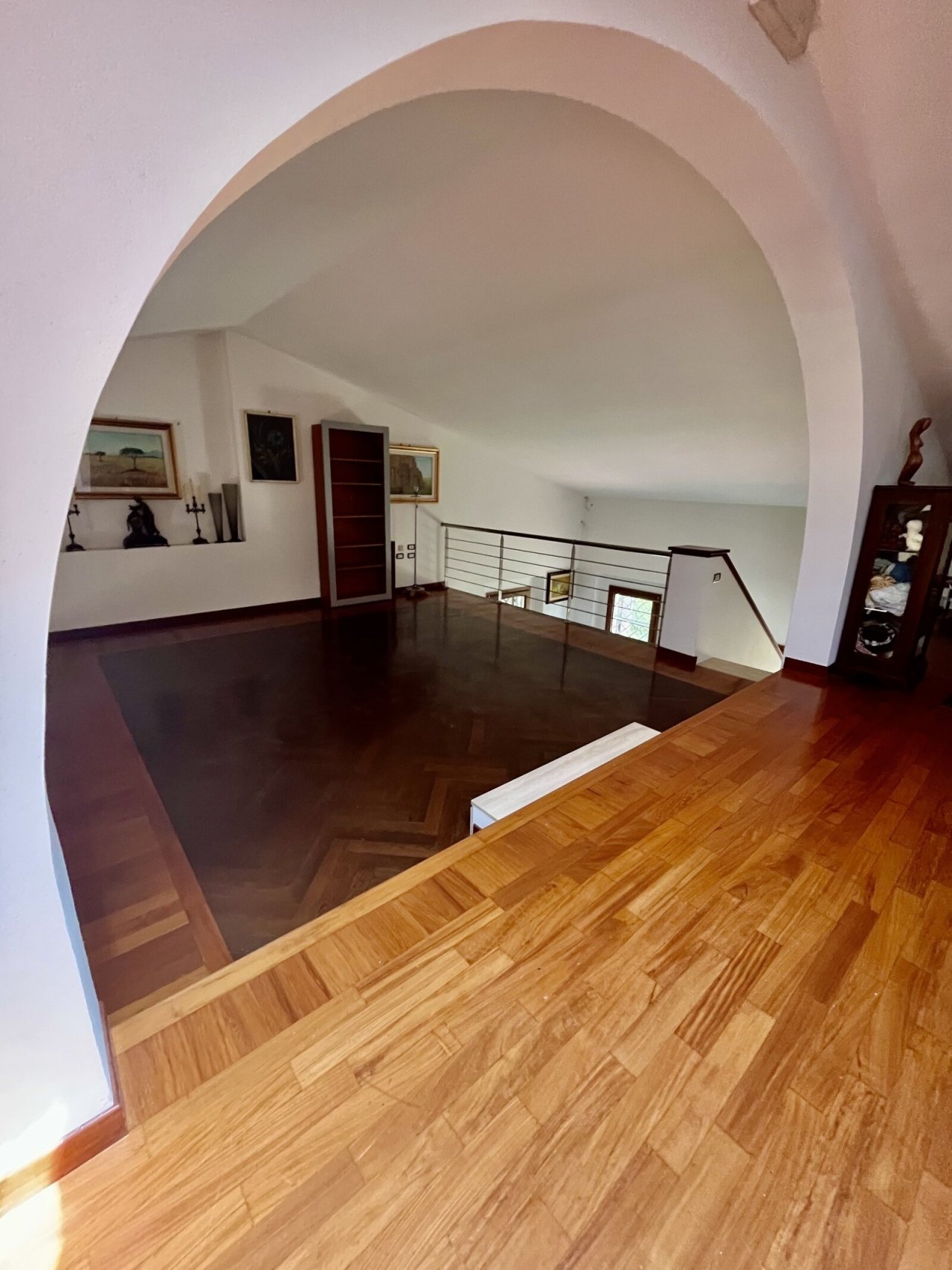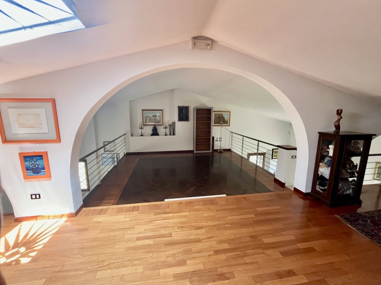 Materiali di pregio, come pavimenti in cotto e parquet, mosaici nei bagni e nicchie realizzate su misura, contribuiscono a creare un ambiente elegante e accogliente.