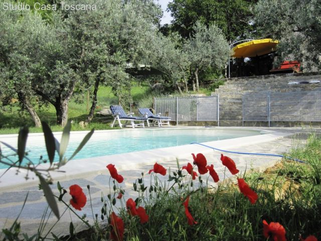 The villa is located about 4km from the village of Sassofortino and offers tranquility and a beautiful panorama. The house is approximately 116sqm in size and the land about 3.7 ha.