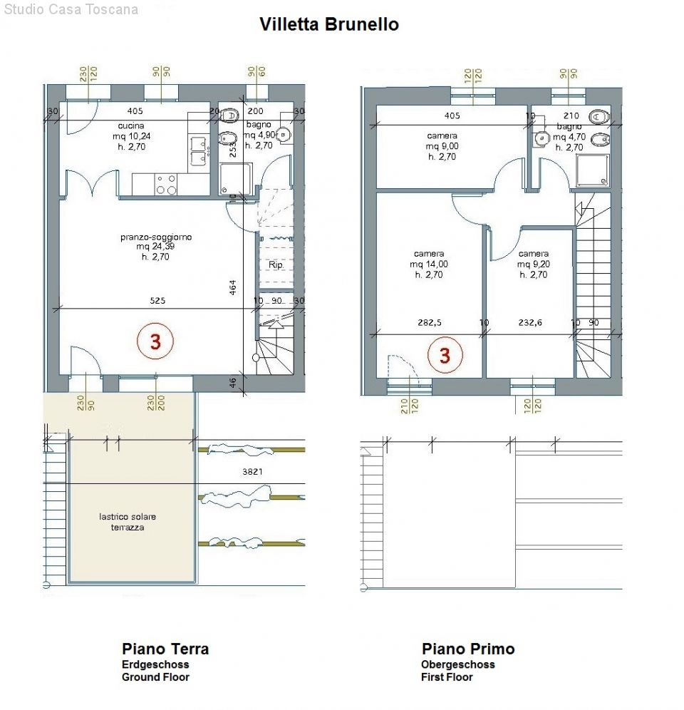 Each house is built on two floors. Fine details and the choice of the materials characterize this new property. The Tuscan style blends with modernity and the our days comfort. All villas offer a magnificent view over the Maremma and each unit has two carports, one of them covered. Each house has a private garden.