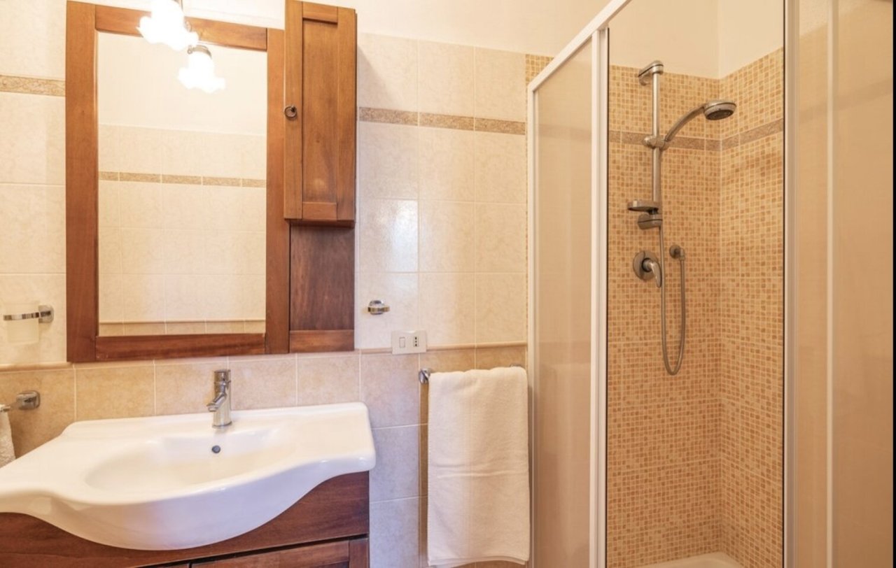 On the first floor there is a small living room, five double bedrooms and four bathrooms with shower. Only a few steps away there is also a second building of 100 sqm.