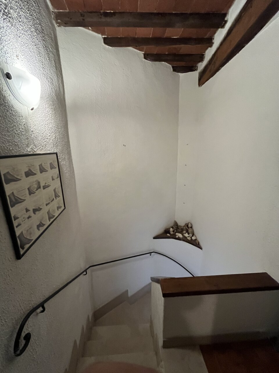 Die kleine charmante Wohnung befindet sich in einem Natursteinhaus und verfügt über einen eigenen Eingang. Im Erdgeschoss befindet sich das Badezimmer und im ersten Stock die Küche und das Schlafzimmer, von denen man den herrlichen Blick über die toskanische Landschaft genießen kann.