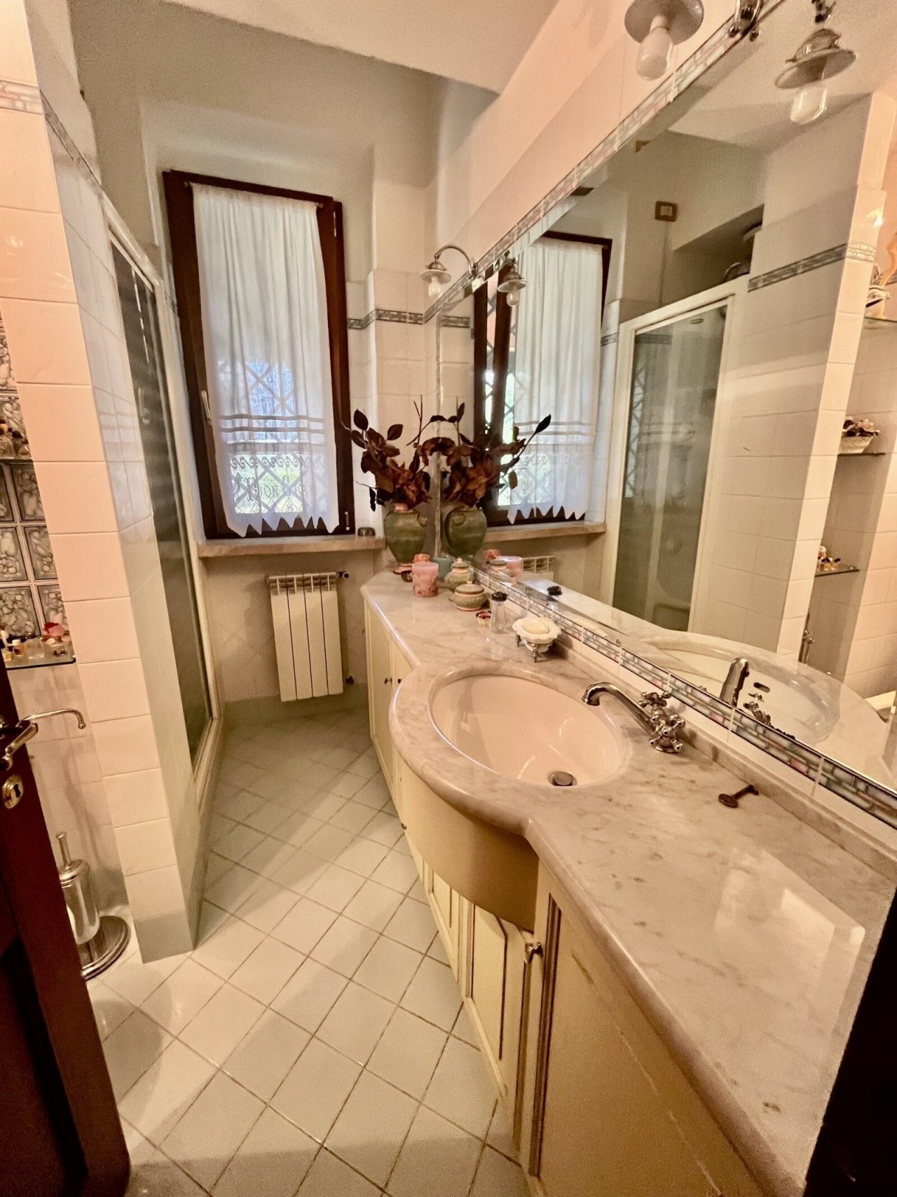 High-quality materials such as terracotta and parquet flooring, mosaic tiles in the bathrooms, and custom-built niches contribute to an elegant and welcoming atmosphere.