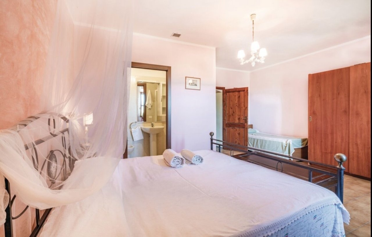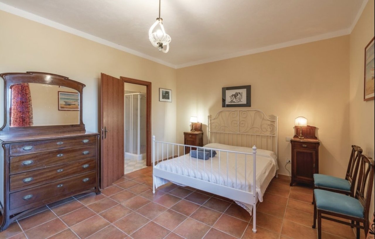 On the first floor there is a small living room, five double bedrooms and four bathrooms with shower. Only a few steps away there is also a second building of 100 sqm.