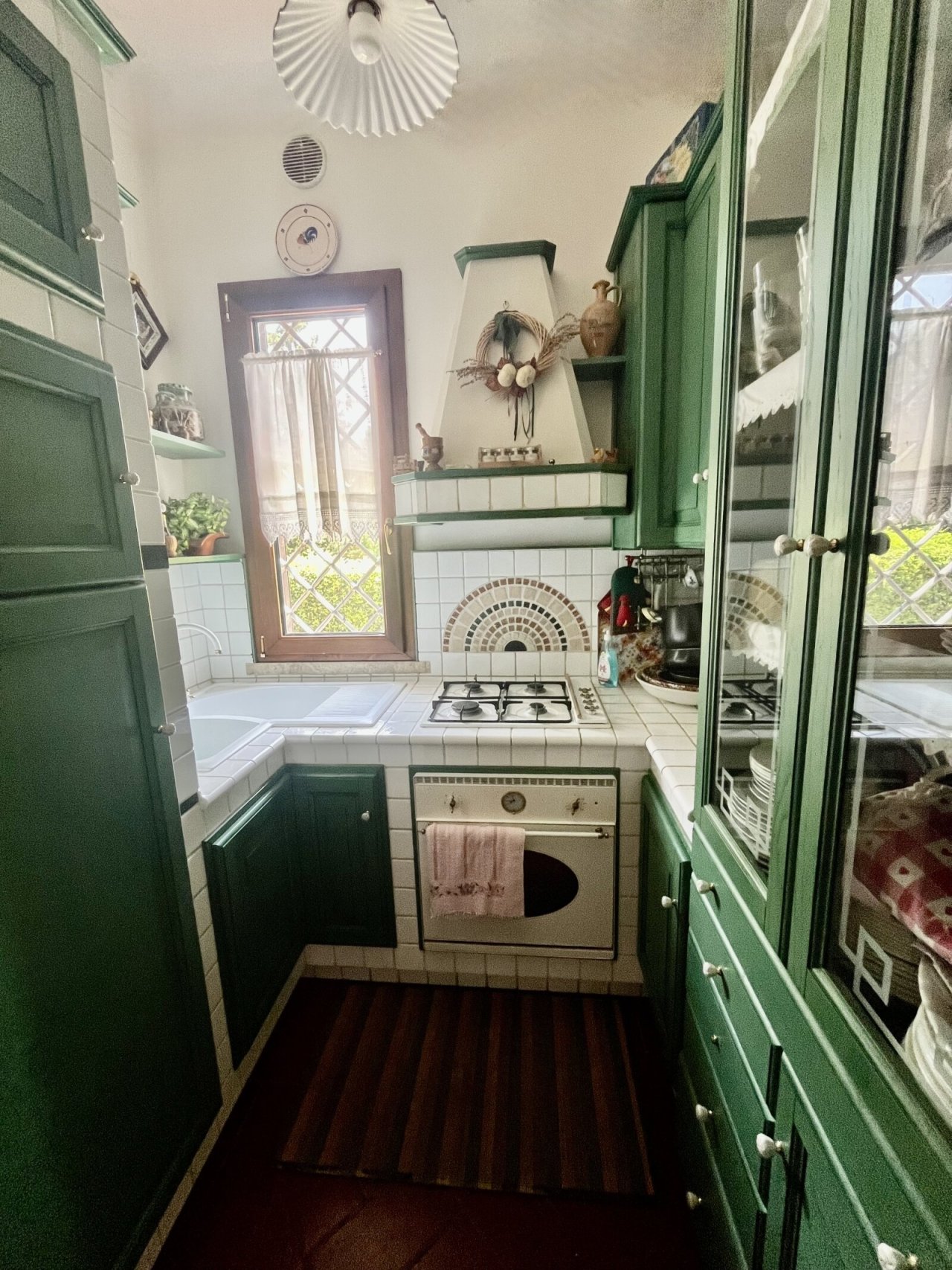 High-quality materials such as terracotta and parquet flooring, mosaic tiles in the bathrooms, and custom-built niches contribute to an elegant and welcoming atmosphere.